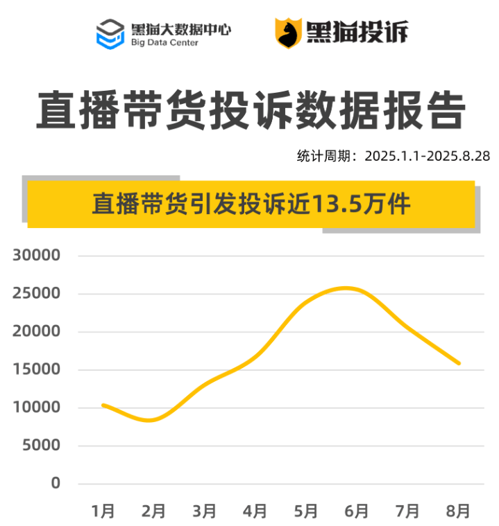 为什么此次新规出台如斯敏捷?回看此次新规的发布布景,必需认可的是,现有的风控系统曾经远远掉队于曲播电商的成长速度。按照黑猫大数据核心发布《曲播带货赞扬数据演讲》,2025年前八月,黑猫赞扬平台累计收到曲播带货相关赞扬近13。5万件,行业问题越来越凸起。